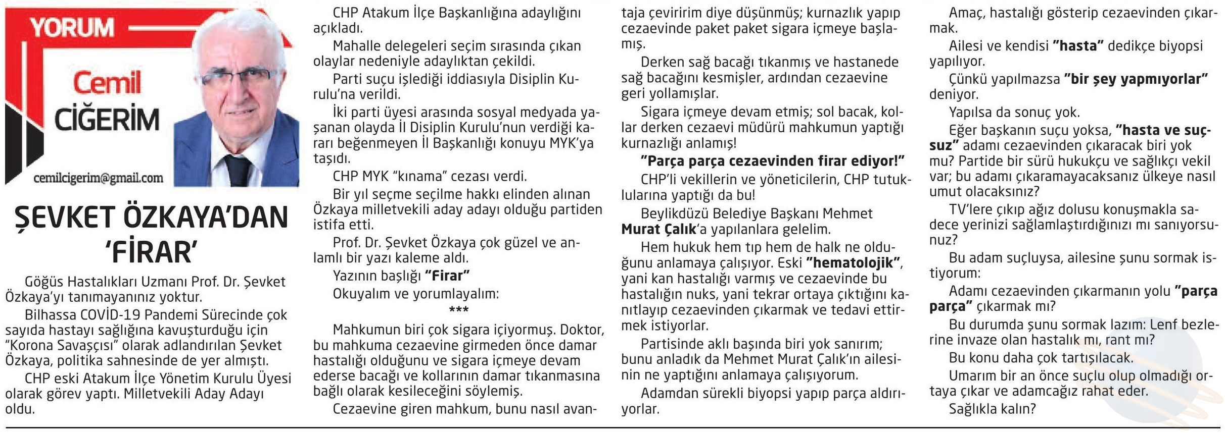 ŞEVKET ÖZKAYA'DAN 'FİRAR'