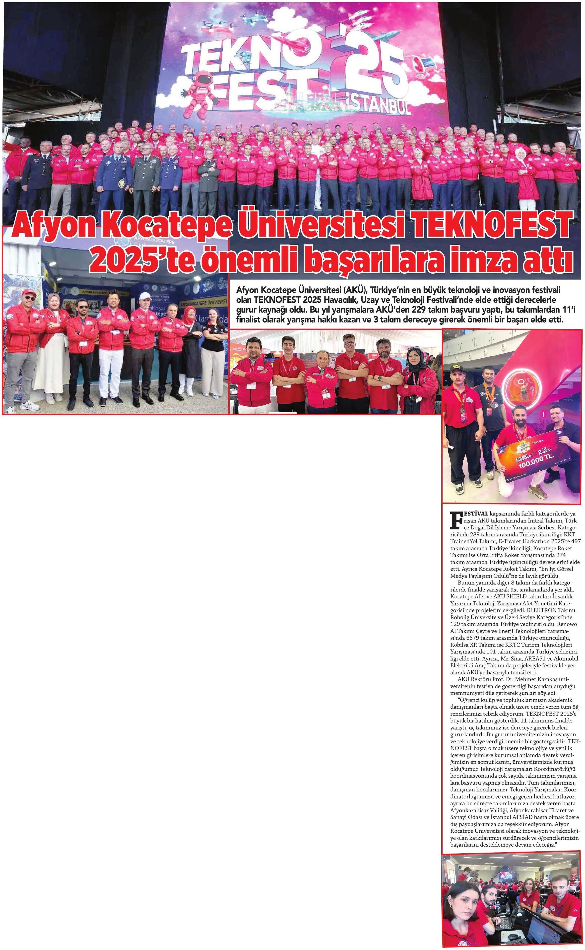 AFYON KOCATEPE ÜNİVERSİTESİ TEKNOFEST 2025'TE ÖNEMLİ BAŞARILARA İMZA ATTI