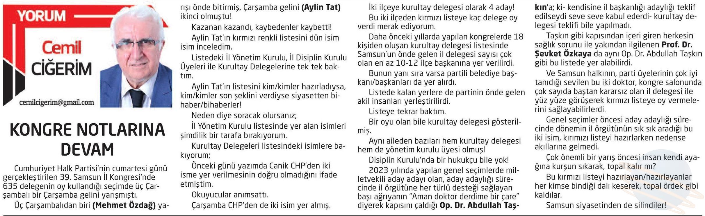 KONGRE NOTLARINA DEVAM
