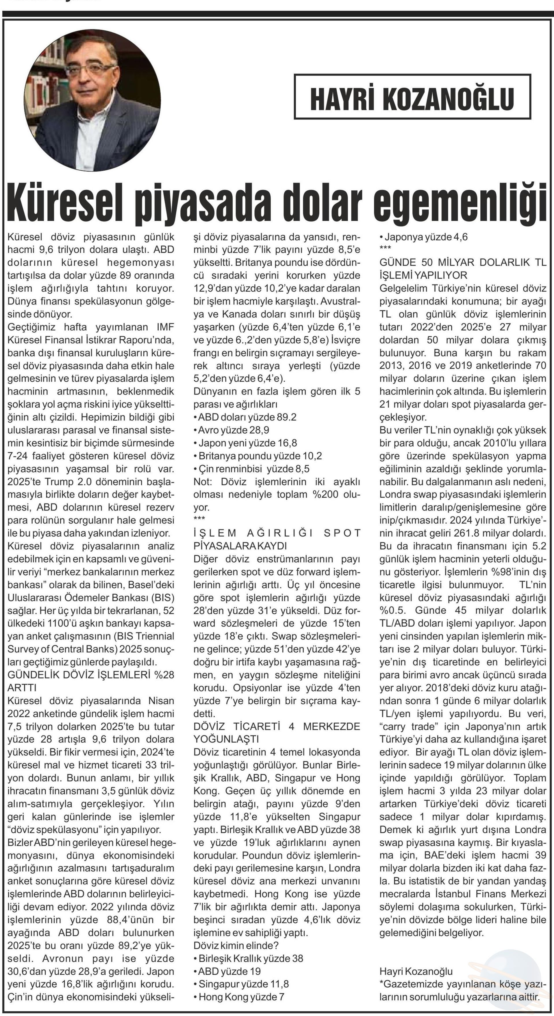 HAYRI KOZANOFİLU KÜRESEL PİYASADA DOLAR EGEMENLİĞİ