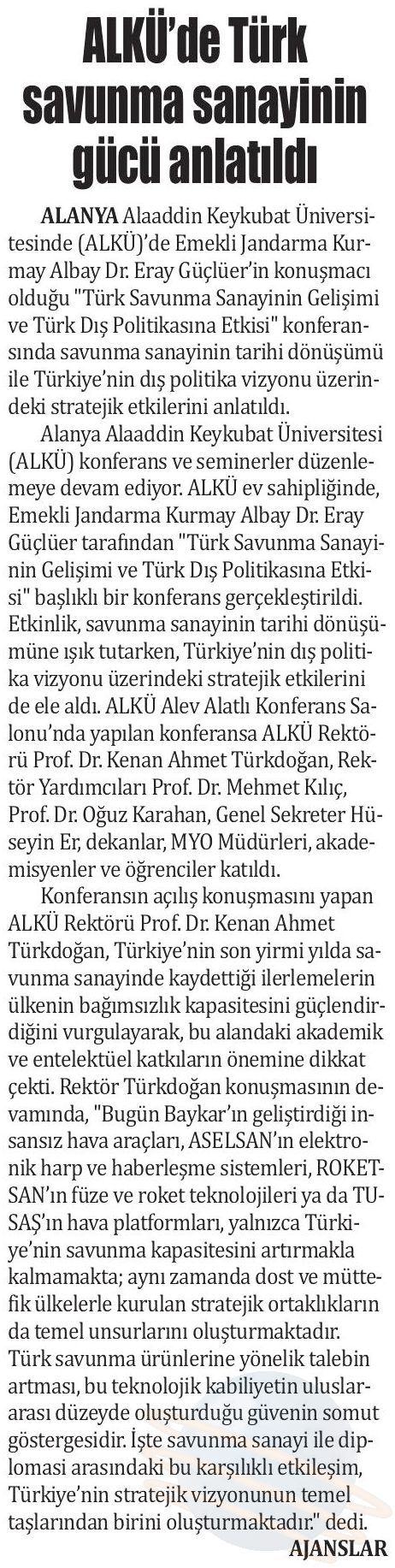 ALKÜ DE TÜRK SAVUNMA SANAYİNİN GÜCÜ ANLATILDI