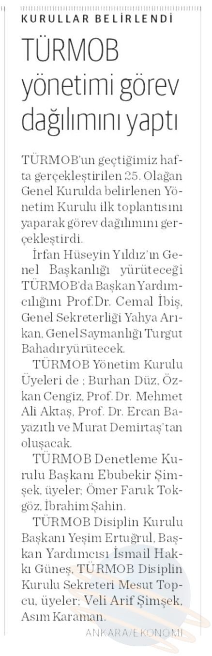 TÜRMOB YÖNETİMİ GÖREV DAĞILIMINI YAPTI