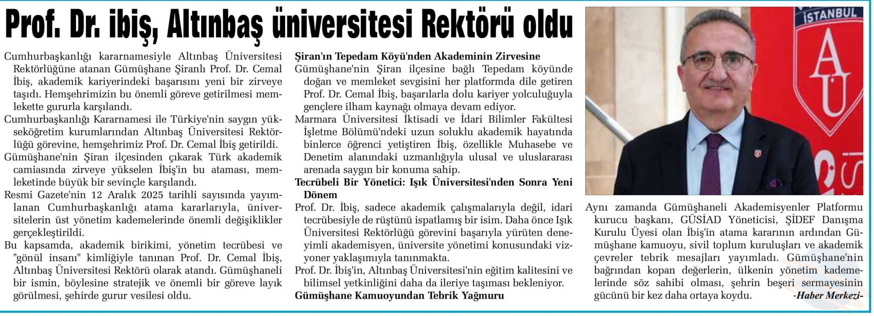 PROF. DR. İBİŞ, ALTINBAŞ ÜNİVERSİTESİ REKTÖRÜ OLDU
