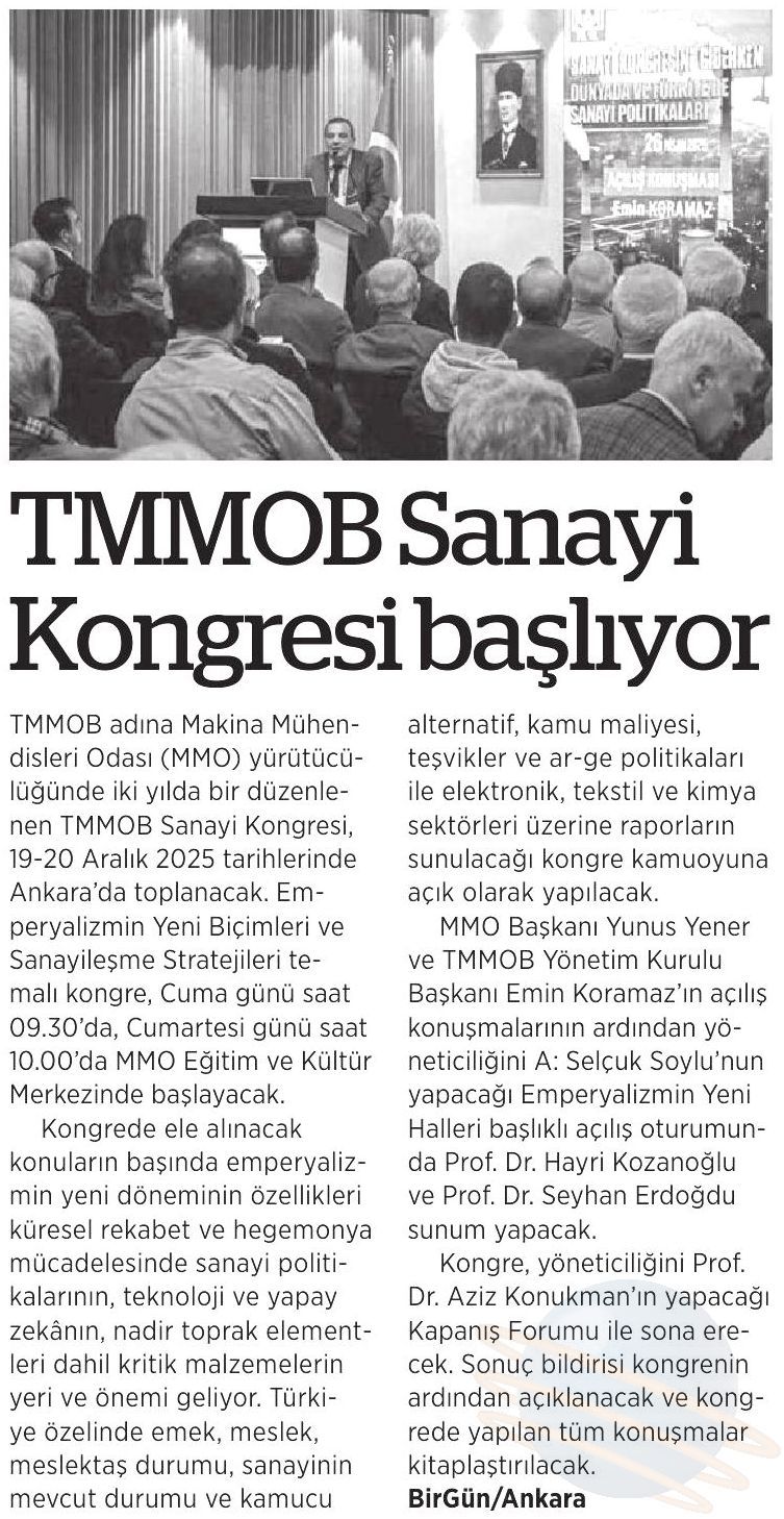 TMMOB SANAYİ KONGRESİ BAŞLIYOR