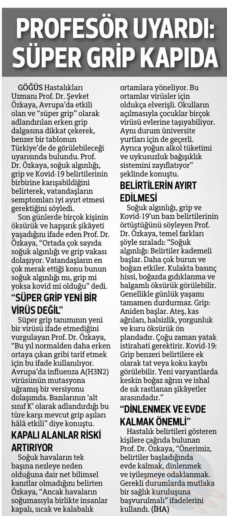 PROFESÖR UYARDI: “SÜPER GRİP KAPIDA”